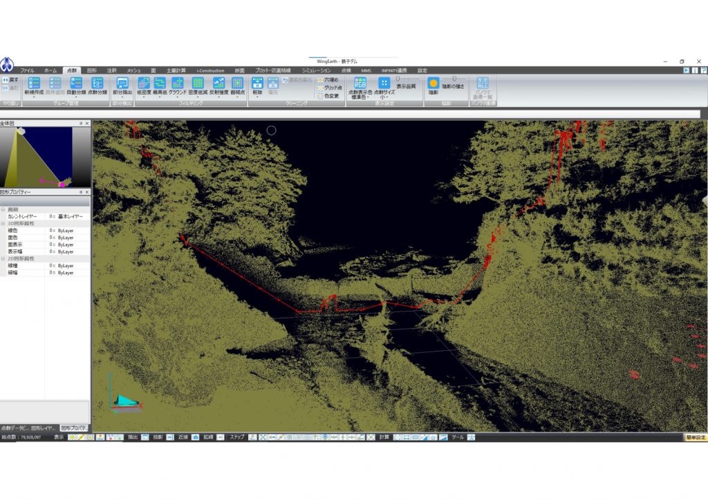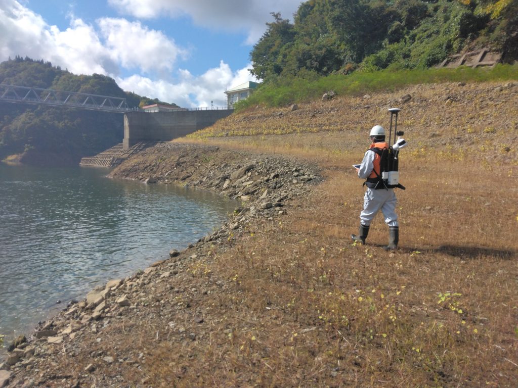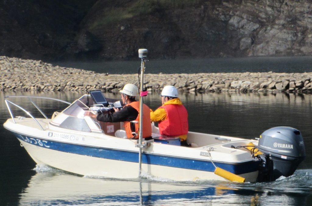 ダム貯水池内における土砂の堆積量を把握するため、深浅測量及び横断測量を行った。GNSSと精密音響測深機を用いた深浅測量とLigrip Lidar スキャナーを用いた横断測量を行い、平均断面法により計算及び成果作成を行った。